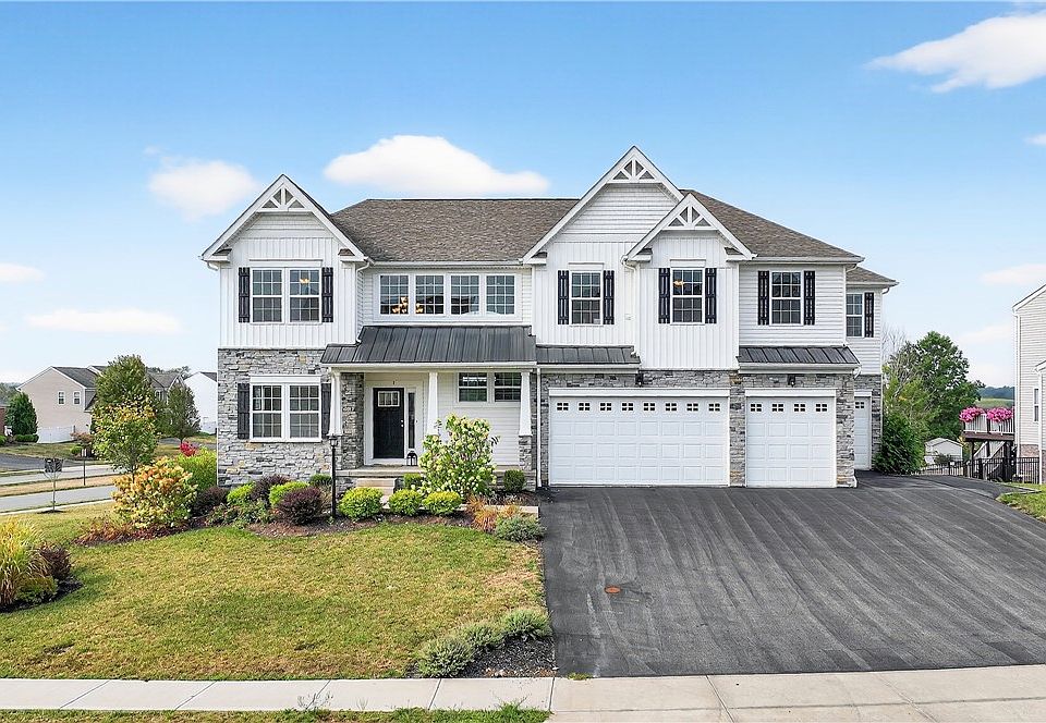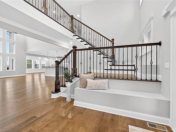 Experience unparalleled elegance in this spectacular 5,200+ sq. ft. former model home. Enter through soaring ceilings and be captivated by a dramatic two-story wall of windows flooding the space with natural light. The designer kitchen is a chef’s dream, boasting dual islands, double sinks, and quartz countertops, seamlessly flowing into the sunroom that leads to a composite deck overlooking a tabletop lot. The two-story family room features a stunning floor-to-ceiling stone fireplace, while French doors reveal a private flex room with its own fireplace. A private den. The sweeping staircase leads to a catwalk and an opulent primary suite with a spa-inspired bath, oversized walk-in shower, freestanding soaking tub, and dual custom closets. Three additional ensuite bath and two additional with guest bath. The lower level is an entertainer’s paradise with so much room to enjoy and custom wet bar. Four-car garage with EV station. Minutes from parks, the airport, and Downtown Pittsburgh.
