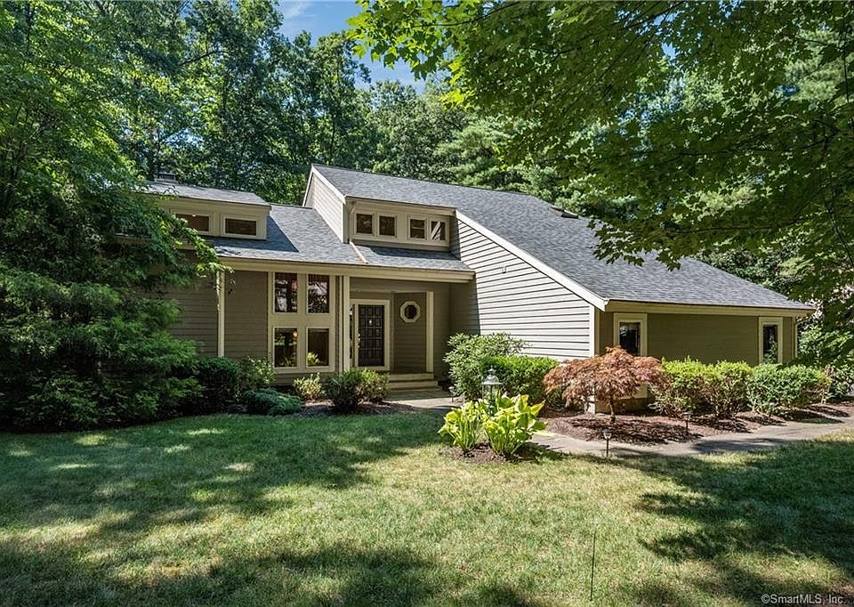 Lush tree rimmed grounds set on a peaceful cul de sac in sought after Devonwood provide the perfect backdrop for this Contemporary home.Generous windows & well placed skylights welcomes natural light into the inviting interior while seamlessly connecting to the private outdoor setting.Clean lines of the flexible layout offers gathering spaces w/today's functional style designed for quiet moments or large celebrations.Vaulted skylit ceiling & an abundance of windows gives the frpl GR a modern light & airy feel. Adjacent is bright DR w/access to the expansive blue stone terrace for fabulous entertaining inside and out. The spacious Kit w/sleek granite,islnd,pantry, casual dining & another access to the lovely terrace adjoins a comfortable family rm. A main level full bath and Bedrm,currently used as a study, adds options. The upper level is airy and attractive w/a light filled landing where two nicely sized rooms share a hall bath. The primary suite is a tranquil haven w/spa bath w/skylit tub and large walk in & convenient laundry. The suite's private deck is the perfect spot for morning coffee or stargazing at days end.A sizeable fin LL is ready for game night,movie marathons or sleep overs made easy by the full bath. An addt'l flex room provides possibilities.New roof 2022. Exterior painted 2022. Wonderful opportunity to live in Devonwood w/miles of picturesque sidewalks,easy access to Winding Trails,shops, highways, medical centers, and Farmington's award winning schools.