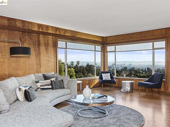 This stunning view home has picture perfect vistas from every level. Upstairs has a Mid-century vibe with glass blocks surrounding the front door, walls of meticulously hand restored wood and cool built-ins in the entry, den and dining room. The den could be used as a bedroom, and has phenomenal light and a great gas burning fireplace. The living room is large and inviting, taking full advantage of the incredible views of the bay and bridges. The dining room has cabinets that open into the kitchen, as well as fun secret doors that house shelving. There is a large eat-in kitchen with newly installed high end appliances, and off the kitchen is a large laundry room, closet/pantry and the entrance to the two car garage. Down the beautiful staircase replete with metal deco style handrail is the bedroom level, where there is a great master with views and two additional bedrooms, all facing the lovely yard and view. Take the back door and staircase down to the patio level, where the house has a separate entrance for the huge 1 bedroom apartment that is long-term tenant occupied with a bona fide scholar and professor from UC Berkeley and Stanford. The yard features a lovely view patio, deck and mature plantings. Along the side of the house is a public stone staircase that takes you to within one block of the Claremont Hotel! This property is situated on a coveted cul-de-sac, so there is no through traffic. Convenient to shops and restaurants, and just a couple minutes from the Elmwood, Rockridge or Montclair. Berkeley Street address with lower Oakland taxes, this property is a wake up call to your best self to live your best life!