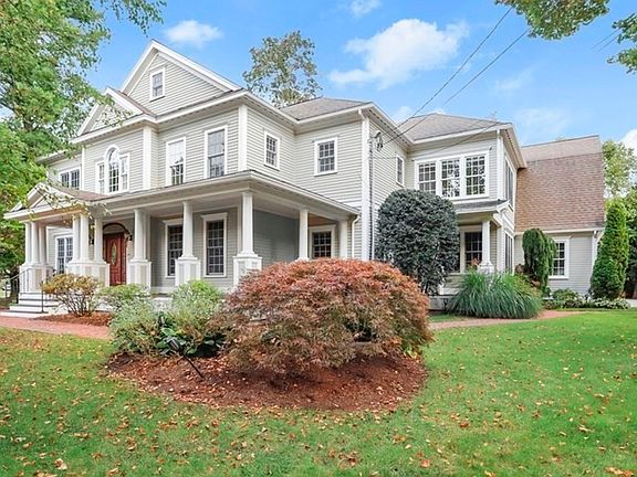 This elegant home is situated on a corner lot in a highly desirable neighborhood and offers the perfect blend of classic charm and modern amenities. A spacious foyer is surrounded by a formal living room and gracious dining room. The cherry and granite chef's kitchen is a standout, complete with fireplace-adorned sitting area. A dramatic two-story family room takes center stage on this floor, providing a stunning focal point for the entire home. Additionally, there is an en-suite bedroom, making it ideal for guests or home office. Upstairs, the primary bedroom is truly impressive, featuring a fireplace, expansive bathroom, sitting room and walk-in closet. There are also three additional bedrooms and two full baths. The finished third floor & lower level provide a wealth of additional living space. Outside, this home features a fenced in yard with a deck and patio, offering ideal space for entertaining. Located in close proximity to schools and major routes, this home truly has it all!
