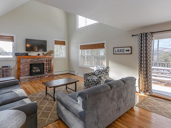 Golf Course Home in Eastman! Convenient, scenic location less than a mile from I-89 with a golf cart path out your front door. This 3-bedroom, 2-bath home features an open concept floor plan, including an inviting living area with cathedral ceiling, hardwood floors and a wood-burning fireplace. Spacious deck is ideal for entertaining, grilling, relaxing and overlooking the tranquility of the golf course. Beautifully updated kitchen with plenty of cabinets and granite counter tops opens to the dining area with windows to enjoy mountain views. Main bedroom situated on the main level along with one bathroom. Remaining two bedrooms and bathroom are on the upper level. Complete with a 2-car detached garage, updated roof and cedar siding for ease of maintenance. Eastman offers lake activities, 6 sandy beaches, golf, groomed cross-country ski trails, snowshoeing, tennis, walking paths, indoor pool, fitness center and so much more. Come see all this home and four-season community have to offer. Showing begin 3/4/23 at the Open House Saturday 2-4pm and Sunday 2-4pm.