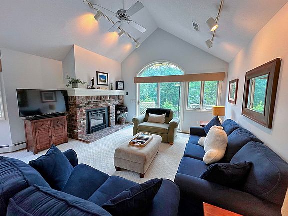 Step into this lovely Fairway Village garden-style townhouse and feel at home with its classy, upscale ambiance. Situated near the golf course and a short walk from the Mount Washington Hotel, this condo features an open-concept plan that makes it easy to spend time together without feeling crowded. The sunny unit boasts three bedrooms: one with a king-size bed, another with a queen-size bed, and a third with a twin over full bunk bed, large desk, and TV. The unique set-up includes air conditioning and ample space for a family or couples, while also providing a large remote workspace. The stylish kitchen is fully stocked for all your cooking needs, offering granite countertops, stainless steel appliances, a Keurig coffee maker, and a cozy breakfast bar that seats four. The sunny open-concept dining and living area features a dining table that seats six and comfortable furniture surrounding a new gas fireplace, with warm wood floors throughout and access to the back deck. Guests have the opportunity to purchase day passes for the pool at the Mountain View Grand Resort, discounted tickets to the Cog Railway, and special access to professional theater productions at the Weathervane Theater. Parking is limited to two vehicles at the unit, with overflow parking available nearby. Additional trash pickups during your stay are available at a cost of $10 per pickup. Located next to the golf course of Mt. Washington Hotel and minutes away from Bretton Woods Ski Area, this home offers easy access to several hiking trails, including the Mount Deception trail with its glorious view of Mount Washington. Enjoy all the attractions that make the White Mountains a popular four-season destination, from skiing and hiking to golfing and fishing, shopping, and visiting parks and attractions such as Santa's Village, the Flume Gorge, the Lost River Gorge, Franconia Notch State Park, and the amazing Cog Railway. Just a short drive away, you'll find the award-winning town of Littleton and countless options for outdoor activities year-round. Take a beautiful ride through the notch to North Conway with its scenic downtown and shopping outlets, and return via the famous Kancamagus Highway. This house is located in a quiet, family-friendly resort area, making it unsuitable for parties or loud gatherings. Quiet hours are from 10 p.m. to 8 a.m., and violation of these rules may result in immediate removal without refunds. Unauthorized pets or guests are subject to a $300 fee and immediate termination of your stay with no refunds. A $100 fee may be imposed for violations of parking limitations, and a $250 fee applies for smoking inside the unit. Trash or food must not be left outside at any time, with a $100 fee for violations. Check-in is any time after 4 p.m. and check-out is at 11 a.m., with unauthorized early arrivals or late checkouts subject to a $100 per hour fee. The unit offers a large remote workspace with a desk and reliable Wi-Fi, making it ideal for remote work.