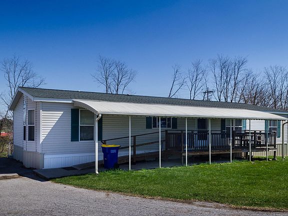 Extremely nice one owner Pine Grove double wide mobile home available in the pleasant and conveniently located Windy Brae Mobile Home Community. Mobile home located at the edge of the park and has a nice private rear yard that backs up to tree line and shrubbery. Three ample sized bedrooms, all with walk in closets. two full baths and a bonus half bath off the laundry/storage room. Wonderful oak kitchen with a center island. Newer Stainless Steel Appliances. Roof and Central Air Conditioning new approx. 5 years ago. New walk in shower in Master Bath with subway tile and glass sliding doors. New Hot Water Heater and newer carpet in Living room. Covered front deck with a handicap ramp. Vinyl Skirting replaced around the entire mobile home 3-4 years ago. A Generac Generator also installed a few years ago. Lot Rent is $440 a month