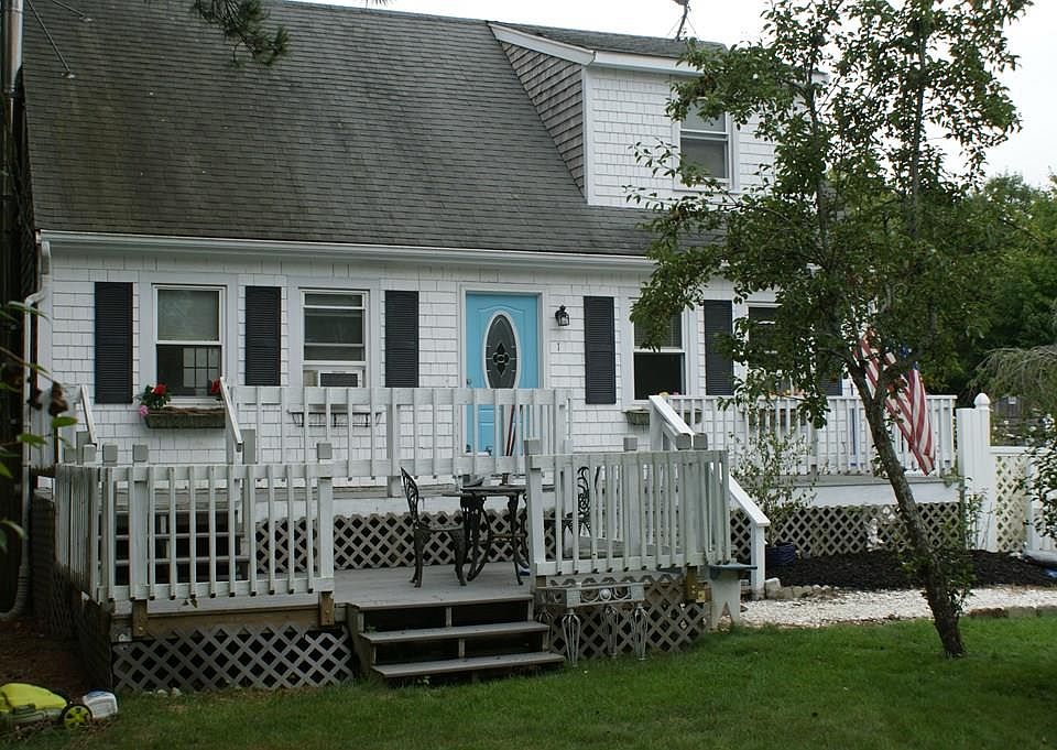 Cape style property with abundant living space, large deck and flowering fruit trees. 1st fl consists of open living/ dining/ kitchen, full bathroom and office/bedroom. 2nd fl has spacious masterbedroom with double closets, catherdral ceiling and direct access to bathroom. Two other bedrooms complete the 2nd fl. Lower level consists of laundry area, walk out, and 2 other finished rooms for living space. Private beach is just a short distance away. More photos to follow.
