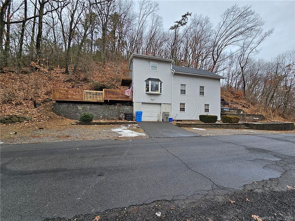 Welcome to this charming Home with privacy galore! As you walk into this home you will immediately see the Updated Kitchen with Granite countertops, stone backsplash and stainless steel appliances. This gourmet kitchen also features a double oven which will be great for those holiday dinners! As you walk out of the kitchen you are entering the dining room that is open to the living room. There is a large deck off of the living room that will be great for entertaining! The main floor has hardwood flooring throughout as well as a half bath. As you go upstairs you will find a large landing which is great for an office space, a large full bathroom with a standup shower, jacuzzi tub and an oversized vanity. There are 2 bedrooms on this level including the huge master bedroom with plenty of closet space and a balcony! This home also has a full sized basement with access to the 1 car garage. Outside in addition to the large deck, you will also see there is a stone patio, as well as retaining walls with water features. Schedule your showing today!