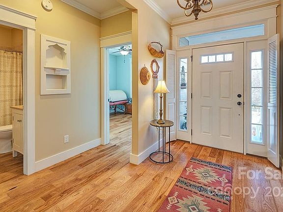 Extremely conveniently located to all things Asheville, this beautiful custom home has everything one could ask for. Access the home through the covered front porch & foyer or through the two car garage. The warm hickory flooring, vaulted ceilings and skylights invite you into the space. Easily access the kitchen, dining room and living room through the open floor plan. You'll love cozying up by the gas fireplace or reading a book in the sun-soaked sunroom. Entertain easily with lots of room to spread out. The split bedroom floor plan allows for great privacy with the secondary bedrooms on one side of the home and the primary on the other. The primary features everything you need: a jetted tub, double sinks, separate potty room, two closets, & custom tile shower. The second living quarters leaves opportunity to share a private space with guests or earn additional rental income. The year-round mountain views and mature custom landscaping are icing on the cake for this beautiful home.