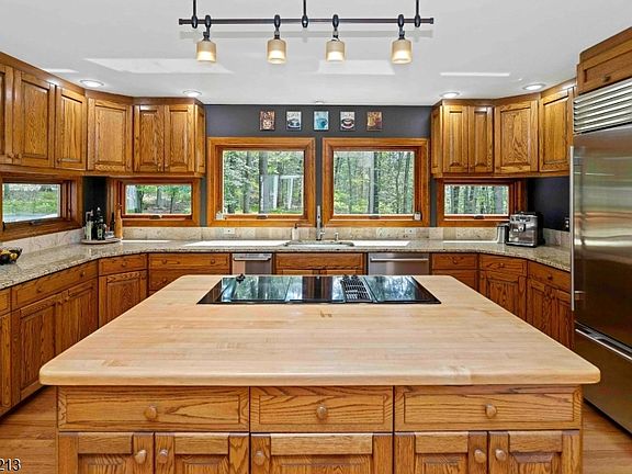 Beautiful contemporary home on 2 acres of a wooded lot and plenty of windows for natural light. The main level of the home is an open floor plan with a Living Room, Dining Room, Den with fireplace, Kitchen with attached eating area, Primary Bedroom with walk in closets and attached full bath, 2 additional bedrooms with access to a Full Hall Bathroom, all rooms are large and surround a peaceful atrium. The Atrium has a fresh water pond and garden area. The peacefulness of the atrium is a great place to meditate or sit and read while listening to the water flowing into the pond. The lower level has an ensuite with a full bath and living Room as well as access to the large basement with plenty of storage, the oversized garage and heated inground pool. Outside there is a front deck that runs the length of the home and a raised deck on the back of the house leading to the pool. Landscaping is professionally done. This home is a true gem! The home has had only 1 owner and is very well maintained.