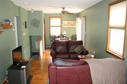Charming 5 room Bungalow. Updated kitchen with maple cabinets, living and dining room with hardwood floors and sliding doors to deck, 2 bedrooms and 2 baths. Most windows updated, heating system 11 years, roof 3 years.