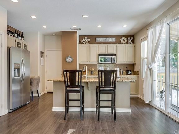 Prepare to fall in love with this charming Surrey Farm home, ideally located on a corner lot overlooking a serene, picturesque, greenbelt. Blessed with a rare wrap-around, fully enclosed yard, this home has it all. The charming white picket fenced entrance and the covered front porch welcomes you into the light and bright interior where a well-designed floor plan with superb amenities including gorgeous wood laminate floors, a surround sound system, recessed lighting, cozy fireplace, and built in cabinetry, create an ideal living environment. The gorgeous kitchen boasts granite countertops and backsplash, beautiful cabinetry, matching stainless steel appliances, Bosch dishwasher, computer nook, center prep island with breakfast bar, and is open to the patio and living area creating the perfect indoor-outdoor living space. The master suite is a private retreat with a built-in media and storage nook, a gorgeous updated spa-like master bath with dual vanities, a walk-in closet, and French doors opening to a private balcony overlooking the peaceful greenbelt. The spacious side patio has a covered porch area and easy-care hardscape and turf, perfect for relaxing and entertaining. Short stroll to community pool and 3 parks, plus World Class Ladera Ranch amenities: 14 pools, tennis courts, skate park, water parks, Summer Concerts, July 4th celebrations, walking & biking trails, clubhouses and more. Close to shopping, dining, entertainment, recreation, & award-winning schools.