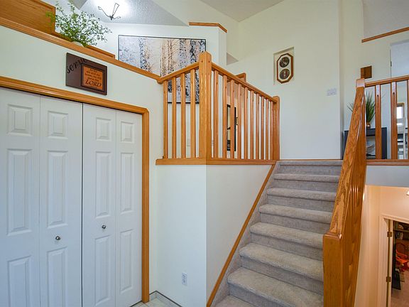 Welcome to this beautifully maintained 1,700 sqft modified bi-level home, situated on a very large lot in sought-after Fieldstone where homes rarely come to market. Close to parks and schools, it has 5 bedrooms, 3 full baths, and is an excellent choice for a growing family. A bonus room above the garage could be used as an office, playroom, or extra gathering space with its own balcony. The lower level features 9' ceilings and supremely comfortable carpeting; double doors lead to a family room and games area complete with a cozy gas fireplace and recessed beverage cooler. Freshly painted and with plenty of upgrades throughout, there is also central air conditioning, Culligan water conditioner and a softener, electric kitchen blinds, and convenient oversized garage and extra-wide parking pad. Relax on the tiered maintenance-free deck shaded by a gazebo and enjoy plenty of space in the yard to garden and play. Beauty and comfort welcome a new family to make memories in this ideal home and neighborhood!