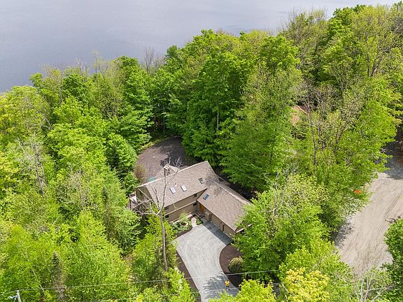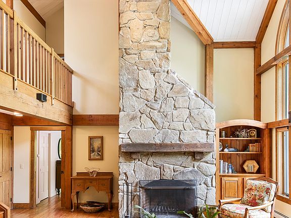 Spectacular Waterfront Home in Eastman! A custom-designed Yankee Barn home situated to take full advantage of the lake views. Enter through the foyer to an inviting great room boasting a grand wall of windows, cathedral ceilings, a rustic stone fireplace and custom bookshelves. A spacious deck and 3-season porch stretch across the waterside of the home. Primary bedroom with a large bathroom and walk-in closet, kitchen with ample counter space, breakfast nook and dining area complete the main level. The upper level has 2 more bedrooms, a bath, an office and loft area. The lower level contains a family room/rec room with plenty of natural light, a wine closet and a large workshop. This property allows you to appreciate wide lake views, beautiful sunrises and the trail around the lake. Truly a must-see! The Eastman Community offers outstanding amenities, including lake activities, six sandy beaches, golf, tennis, pickleball, cross-country ski trails, an indoor pool, exercise facility and more. All this in the heart of the Dartmouth - Lake Sunapee Region.