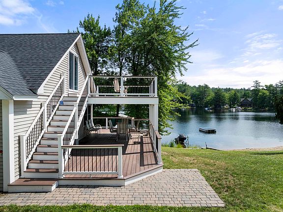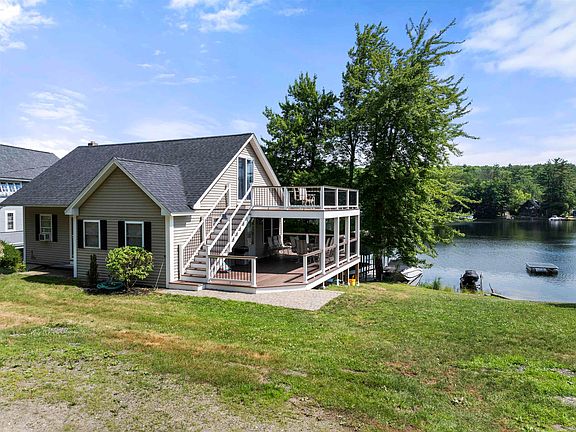 Nestled in the picturesque town of Meredith, New Hampshire, this exquisite 5-bedroom, 3-bathroom waterfront home on Lake Winnipesaukee offers luxury and tranquility. Located in a quiet cove within the beautiful Fish Cove Association, the property includes a private 28-foot dock, perfect for boating enthusiasts. Recent upgrades include a new roof, double composite decking with stunning lake views, new flooring, and a new water heater. The open-concept kitchen, featuring stainless steel appliances, flows seamlessly into the dining and living areas, all bathed in natural light. Sliders open to a wrap-around deck, perfect for enjoying morning coffee and beautiful sunrises. The first floor features a master bedroom with a bath, a second bedroom, and an additional bathroom. Upstairs, you'll find two more bedrooms, one with access to a second-story deck. The fully finished basement includes a cozy family room, an additional bedroom, and new sliders leading to the waterfront lawn. The Fish Cove Association, with just eight homes, offers shared amenities such as a sandy beach, a raft for water activities, and a common area for yard games, perfect for swimming and more. This property is only minutes to downtown Meredith, with restaurants, shops, and all the Lakes Region has to offer. This property is a rare opportunity to own a slice of paradise on Lake Winnipesaukee. Don't miss out on making this dream home your reality. Delayed showings begin at open house Saturday 7/6 from 10am-1pm.
