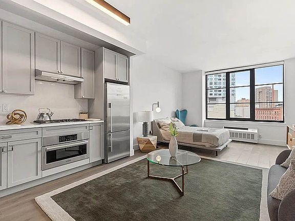 **Special Limited Time Offer: Secure your application within 48 hours of your tour, and we'll waive the amenity fee **Brooklyn's Urban Oasis: 1 Flatbush Residence** Welcome to the intersection of history, art, and modern elegance. Seamlessly intertwining Brooklyn's vibrant cultural heart with urban luxury, our apartments at 1 Flatbush present an exquisite retreat at the confluence of Downtown Brooklyn and Fort Greene's dynamism. Nestled in the heart of Brooklyn's cherished gem, Fort Greene, our location offers an unparalleled blend of history, art, and verdant allure. Dive into the neighborhood's rich tapestry with nearby landmarks like the illustrious Fort Greene Park, the iconic Brooklyn Academy of Music, and the groundbreaking Museum of Contemporary African Diasporan Arts. The streets here, shadowed by the legacy of legends like Michael Jordan, resonate with diversity from hip bars and indie boutiques to laid-back cafes, every corner sings its unique tune. Convenience is at your doorstep, with not one but two Target stores, a Trader Joe's, and a Whole Foods Market just two blocks away. Whether it's a quick grocery run or a shopping spree, everything you need is within arm's reach. Yet, amid these cultural and historic landmarks, 1 Flatbush promises a tranquil escape. Whether you're venturing to the lush landscapes of Fort Greene Park, exploring the Slope and Prospect Park just a mile away, or immersing in Lower Manhattan's delights within a ten-minute journey, our residences offer an ambient sanctuary from the city's exhilarating pace. Barclays Center, a beacon of entertainment, and the bustling Atlantic Terminal are just a heartbeat away, ensuring convenience without compromising charm. Embrace an authentic NYC lifestyle, where the rhythm of the city and the tranquility of nature coalesce, all from one distinguished Brooklyn address. Welcome to 1 Flatbush where your urban oasis awaits. Apartment Elegance: Quartz Mastery: Marbled countertops that exude sophistication. Distinct Spaces: Separate living and dining areas (available in select homes). Culinary Excellence: Bosch kitchen appliances, entertaining islands/breakfast nooks, and gourmet kitchens. Modern Conveniences: Dishwashers, built-in microwave ovens, Bosch washers & dryers. Craftsmanship: Custom shaker style soft close cabinetry, elegant baths with tailored vanities, and driftwood-stained wood flooring. Luxury Touches: Expansive city views, oversized windows, abundant closet spaces, recessed lighting, and individual climate control for each room. Building Perks: Fee-Free Living: Enjoy a no-fee building. Personalized Services: 24-hour concierge in a renovated lobby, live-in super, and parcel room service with delivery notifications. Entertainment & Wellness: Resident lounges with 65" TVs and a full catering kitchen, a fitness center with Peloton spin bikes, and a game room laden with billiards, darts, shuffleboard, and more. Outdoor Elegance: Seasonal wraparound rooftop deck with lounge chairs, an outdoor kitchen/grill, and proximity to Fort Greene Park. Additional Amenities: Onsite management, pet-friendly premises, laundry room for oversized items, valet housekeeping, secure bike storage, rentable storage lockers, and unrivaled subway connectivity. *Features available in select homes. Please Note: Pricing and floor plan visuals are dynamic and may change. Photos presented might reflect a different unit than the exact unit available. Smoking allowed:No