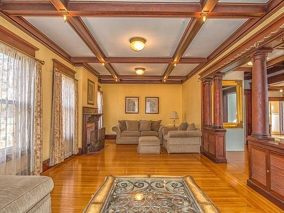 Welcome home to this stunning 4000'+ Colonial in the historic Forest Park District. The grand entry opens to the foyer with a working elevator and staircase offering you a glimpse of an era with a style one can only define as timeless. The home features a kitchen with stainless steel appliances, island and unique butler's stairwell, a study/library and half bath. Spacious dining & living room offer custom built-ins, hardwood floors, gas fireplace and remarkable craftsmanship with wood beamed ceilings and wood columns. On the second floor you'll find 4 bedrooms, 2 full baths and access to an inviting covered porch, great for sitting with your morning cup of coffee. Finished third floor provides a bonus room, walk in cedar closet, 2 bedrooms and a full bath, ideal for an in law or au-pair suite. Other great features include rare double lot, 3 car garage, coy pond, irrigation system, updated electric panel and finished basement area with work out room & sauna! Open House 3/14 11:00-12:30.
