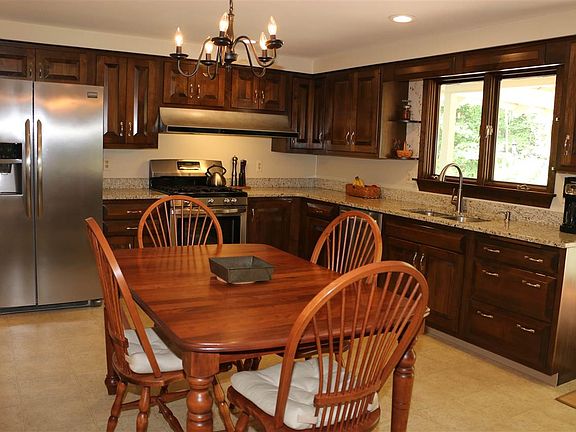 Prepare to be impressed with the warm, inviting, and comfortable feel of this affordable and impeccably maintained, 3 bedroom, 2 bath Windham home. The recently updated kitchen offers maple cabinets, granite countertops, propane range with oversized hood, and a wood burning fireplace. The family room is bright and airy with a large bay window. The half wall between the family room and stairs has a hidden surprise with a television and remote controlled TV Console lift - a great utilization of space! The master bedroom offers an en suite bathroom with a custom antique style vanity. Two additional bedrooms are nicely sized. The basement has both a furnished room for work or play, as well as a workshop area. Enjoy the large flat back yard and it's lush perennial gardens white sitting on the covered trex deck or around the built in fire pit. Ample storage available with both a tool shed and a wood shed. Add'l updates/features include newly installed oak tread stairway, central a/c, generator hook-up, and wood stove connected to heating system. Welcome Home!