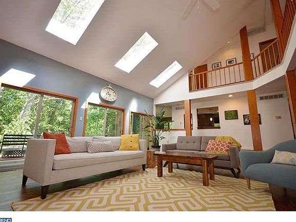 Wow! Sellers bought this home less than a year ago and are now being relocated! They've made many updates to the property which make this home a must see! The home has a total modern and open floorplan. As you enter the front you are greeted by the enormous family room with cathedral ceilings throughout and wall to wall glass sliding doors overlooking the private back yard. The entire first floor other than the kitchen is hard wood. The dining room is situated perfectly between the family room and beautifully updated kitchen. The kitchen includes granite counters, ceramic tile floors and stainless steel appliances. Just off of the family room is another living space that can be used as a formal living room, office or game room. Upstairs there are four large bedrooms including a master suite with its own private balcony, large his and hers walk in closet space with custom shelving and a remodeled bathroom with travertine counters, ceramic tile and a frameless walk in shower. The basement is partially finished and offers a great deal of storage and has a walkout to the side of the house. The multi-level back deck is off of the family room and offers a ton of privacy and great views of the large yard. This home has had updates to HVAC, roofing, deck and much more in the short time owned by current sellers. Make your appointment to see this great home today!