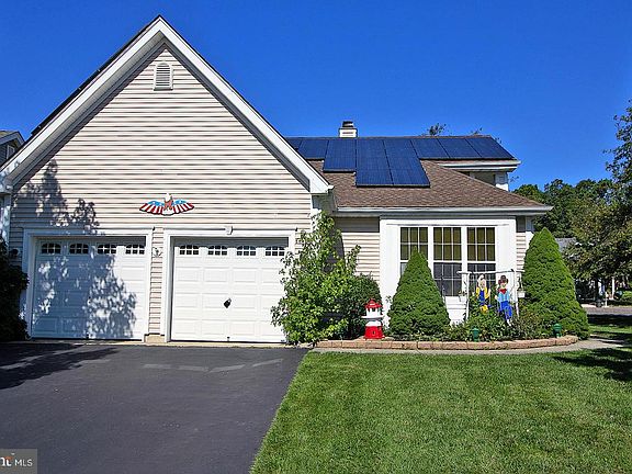 The possibilities are endless in this bright Regatta model in Four Seasons at Mirage where Life is Good! Step through the foyer with gallery wall into either the Formal Living Room with Berber carpet & ceiling fan, or the Formal Dining Room with gleaming hardwood floors, a chandelier & a bay window bump out that provides ample space for entertaining. The large Family Room with wood floors, a Fireplace with beautiful mantle & a ceiling fan adjoins a cheery Kitchen designed for practicality with center island, pantry, & breakfast nook with ceiling fan. A Media cabinet that matches the kitchen cabinets is perfect for storage of sound systems & other media devices. Sliders take you to a roomy (27' x 10') 4 season sunroom which is carpeted, has built in heaters & air conditioning perfect for extending your living space outdoors & barbeques on the patio! Guests will enjoy their privacy in the guest room with ceiling fan and their own guest bath. The Master Suite is large & tastefully designed with a private hallway, art niche, ceiling fan, walk-in closet plus a linen closet & a smaller clothes closet. The Master Bath with tile floor offers double vanities, a soaking tub, water closet & stall shower. The laundry room with built-in cabinets has a newer washer & dryer plus an extra storage closet, and flows through a screen door into the 2 car garage that has plenty of shelves for storage as well as a utility sink. Solar panels provide economic electric bills all year round. Pull-down stairs in the garage give access to attic storage above. All this on a lovely corner lot. Enjoy 48+ maintenance free living lifestyle while you are close to Long Beach Island, the bay & its beaches, fishing, casinos & shopping in Atlantic City!