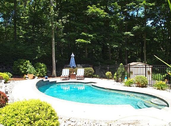 Resort living at home! Entertain or relax to the sounds of a waterfall by your private pool nestled in the woods...barbecue on the deck or sip cocktails on your covered patio?slip into your hot tub overlooking a sweeping lawn with distant treetop views. This picture perfect home includes a custom designed kitchen with cherry paneled appliances, granite counters and center island. Crown molding, hardwood flooring and Family room with gas fireplace on the main level. Updated baths with frameless glass shower and soaking tub. The party finishes in the partially finished walk-out lower level, complete with game room. Set on a quiet cul-de-sac just two minutes to the Village of Bethel.
