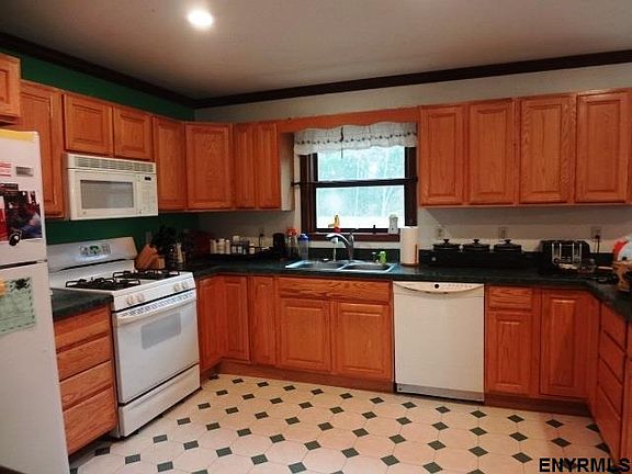 Original-owner conveniently located Queensbury Colonial set back from the road and 1+A lot. Open kitchen area w sliders to back deck and nice fenced in yard, first floor laundry & 3/4 bath, c/a, and nicely finished off basement with additional room to roam & interior/exterior entrances, 2 car garage.
