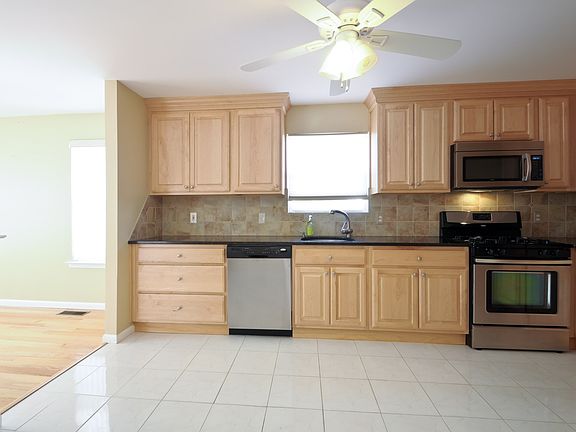 Beautifully renovated 3 bedroom, 2 full bath end unit. Stunning new kitchen with granite countertops, stainless steel appliances and tons of cabinets! Gleaming hardwood floors in living room and dining room. Lovely private balcony off nice sized living room. Huge master bedroom with full private bath and 2 closets! New carpeting in bedrooms. Huge full basement. Central air. Great outdoor pool and playground. tenant to pay 1st $100 for repairs.