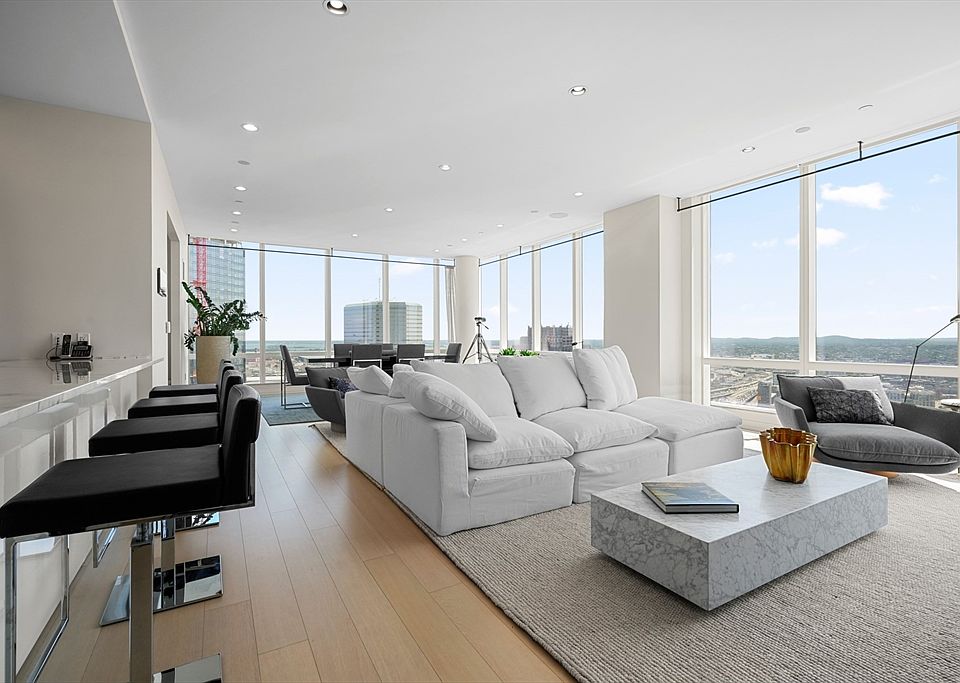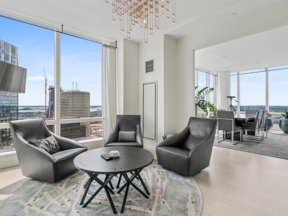 Magnificent views stretching from the Boston Harbor Islands, the skyline of Historic Back Bay to the Western turn in the Charles River. This 49th floor custom designed corner residence features grand open living room with a marble fireplace, hardwood floors, floor to ceiling windows, designer lighting and blinds, adjacent entertaining dining area, re-designed kitchen with expansive open island, state of the art appliances, generous cabinet/pantry storage, primary bedroom with spectacular spa bath with soaking tub, separate shower, radiant heat marble flooring. Two additional bedrooms each with en suite baths, gracious entrance foyer with silk wall covering, custom Italian lighting. 5 star white glove service, doorman, 24 hour security, exclusive residents only on site club, private lounge, La Vie social experience, private events room, 75' lap pool, whirlpool, private fitness center, outdoor terrace with gas fire pit, children's playroom, salon & spa. Two valet garage spaces included.