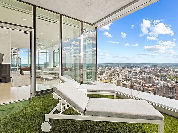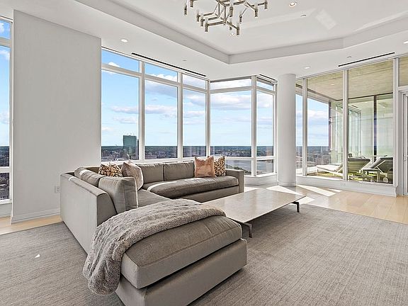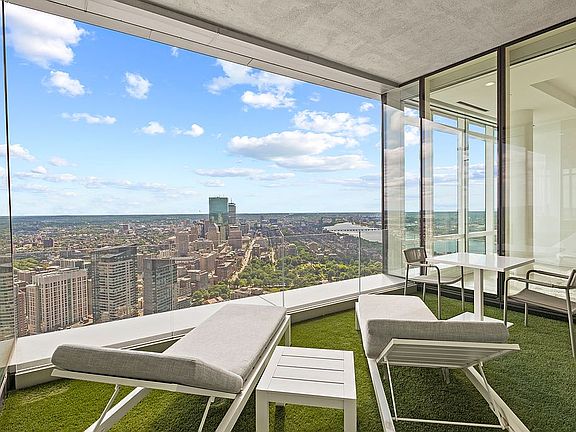 Located on the 57th Floor of Millennium Tower, PH2E has unobstructed south-facing views of Back Bay and the Charles River. This 3,435 sq. ft. penthouse includes 3 bedrooms & 4.5 baths. The master suite consists of two walk-in closets, two full bathrooms, and a mini bar. Christopher Peacock kitchen cabinetry, Sub-Zero and Wolf appliances fill the kitchen. The 200 sq. ft. private, outdoor terrace is perfect for entertaining guests. 2 self-parking spots included. Residents of the ultra-luxury Millennium Tower condo building enjoy impressive amenities such as 24/7 concierge service, valet parking, resident spa and gym, swimming pool, on-site restaurants, and more. Unit PH2E features automatic System 7 solar/blackout shades and lights, as well as Sonos speakers throughout. 11-foot ceilings give the condo a roomy and airy feel.
