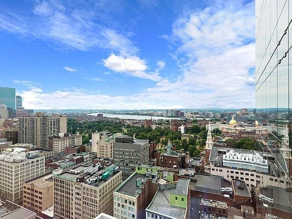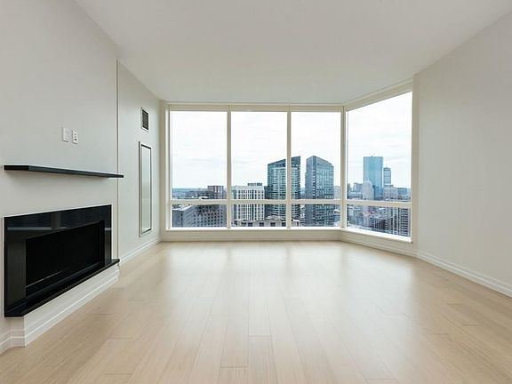 Luxurious Millennium Tower corner residence with spectacular views. ALL UPGRADES: GAS FIREPLACE in living room, marble foyer, and hardwood floors in both bedrooms. Breathtaking sunrise and sunset views from floor to ceiling windows of the Boston Harbor, downtown Boston, Boston Common, across to Back Bay, Beacon Hill, State House & Charles River. Wide plank white oak floors throughout and travertine marble tile in baths. Heated floors in the master bath. Large open kitchen features Poggenpohl cabinetry, Sub-Zero, Bosch & Thermador gas appliances, wine cooler. Motorized shades and custom closets. MT offers 5 star services with 24/7 concierge, doorman and exclusive access to the 2 story club level with owner's lounge, private dining room, media and billiards room, library, outdoor terrace, Equinox private gym with lap pool and more. 1 valet garage parking space included. Ultimate in luxury living. Experience a new city lifestyle at MT. Photos are virtually staged.