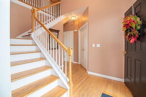 Located in the desirable Pine Hollow neighborhood in the Ponds of Plymouth, this 4 bedroom 2 1/2 bath colonial is just what you are looking for! Enter the front door into the soaring two story foyer, to the left you will find the formal living room and adjoining dining room with crown moulding, wainscotting,and bay window. To the right through double doors your home office. Ahead is the large kitchen with maple cabinetry, center island with dining area open to the large family room with fireplace and 4 large windows overlooking the backyard. The first floor also has nine foot ceilings,recessed lighting and hardwood flooring. Second floor boasts three good sized bedrooms with a full bath, a laundry room and lovely master suite with walk in closet and double doors leading to the master bath which has a double vanity, jetted soaking tub, separate shower and water closet. All this with a two car garage, corner lot, fully fenced in backyard with a two tiered deck.