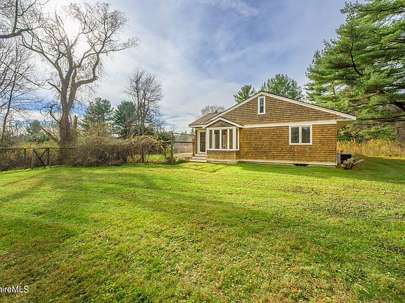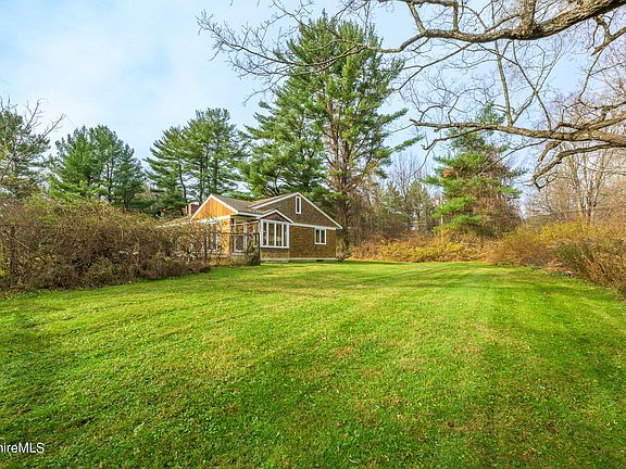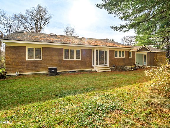 Enter into this charming home with a warm and welcoming feel of comfort and an elegant interior shaker style design. A single-story home with three bedrooms, two baths and a spacious vaulted and bright bonus loft on the 2nd floor that can be used for guest overflow, or private reading/office area. Airy open floor plan has a kitchen with breakfast bar, a formal dining area and a living room with sophisticated cathedral ceiling and recessed lighting. Enjoy the cozy ambience of a wood-burning modern slate fireplace while overlooking lush greenery and sweeping mountain views. Rich wide board hardwood flooring flows throughout the house and gorgeous wood cabinetry features shelves and countertops that complement and tie together this Harvard architect designed interior space.