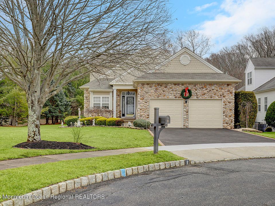 Stunning Wellington Model With Loft And Full Basement Located In The Very Desirable ''Renaissance'' In The Heart Of Manalapan! This Immaculate Home With Paver Walkway And Stone Front Sits On A Premium Lot In A Cul-de-sac Backing To Woods. The Home Features A Very Open And Spacious Layout With Gleaming Hardwood Floors, 3 Bedrooms And 3 Full Baths. MBR Suite W/WI Closet, MB With Double Sink. Spacious 2nd BR, Huge LR With Soaring Ceilings And Gas Fireplace, Large Formal DR, Office/Den, Beautiful Gourmet Kitchen With Double Oven, Mirror Backsplash, Granite Countertops And Sliders To Deck/w awning which Overlooks A Very Private Backyard. The Amazing Loft Adds An Abundance Of Additional Space With A 3RD BR Full Bath And Large Living Area. This Home Also Features A Full Basement With High Ceilings That Can Easily Be Finished. 2 Car Garage With New Coated Floors, Newer Windows, HVAC, Sump Pump, Water Heater And Paved Driveway. Community Features: Clubhouse, Outdoor Pool, Tennis, Fitness Center, Bocci, Shuffle Board. Close To Route 9, Transportation, Shopping. Don't Miss This Wonderful Home!