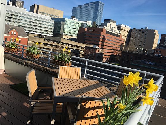 Spectacular penthouse w/ private deck in luxurious Beacon Hill building constructed in 2004. 3 bed/2 bath corner unit all on one floor. 10 foot ceilings, hardwood floors & floor-to-ceiling windows throughout. Open living/dining room/kitchen w/ wall of windows leads to a private deck w/ city views. Kitchen has limestone counters & stainless GE Profile appliances. Master bed w/ custom closets and bath ensuite, including jetted tub. Private storage, W/D in unit & huge common roofdeck above. Pet friendly. Elevator building; no steps. Parking, Whole Foods, CVS and Starbucks all steps away. Less than 5 min walk to Esplanade, Government Center, Mass General Hospital and Red Line T stop. Less than 8 minute walk to Green Line T stop and Commons/Public Garden.