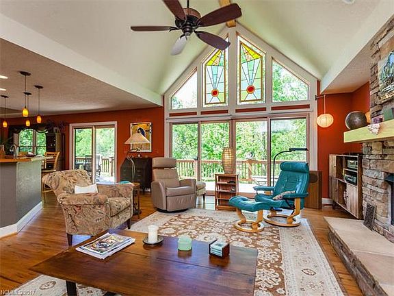 Immaculate light-filled home with open floorplan & 1-level living just 13 minutes to DT Asheville. Meticulously maintained & beautifully landscaped with lots of outdoor lighting. Hardwood floors, new solid core doors, 3-yr old kitchen appliances and water heater. Daylight basement has inside & outside entrances and has been a successful Airbnb. Seller receptive to leaseback. Composite decking with retractable awning on upper level, plus covered lower level deck. Private hot tub area. Taxes TBD.