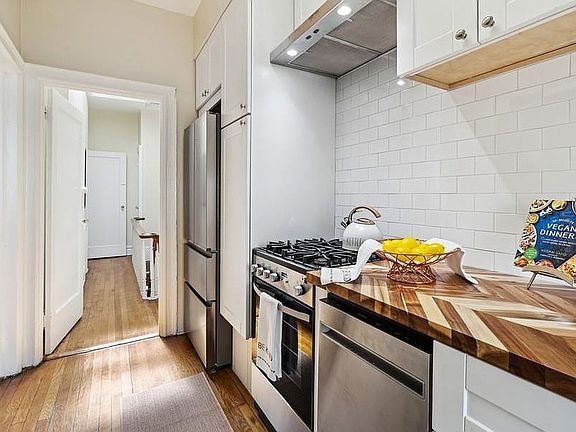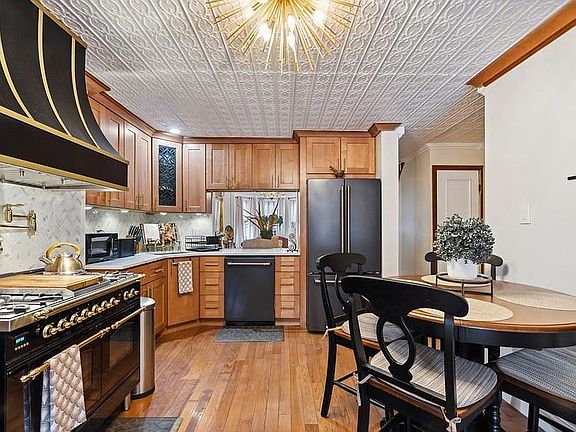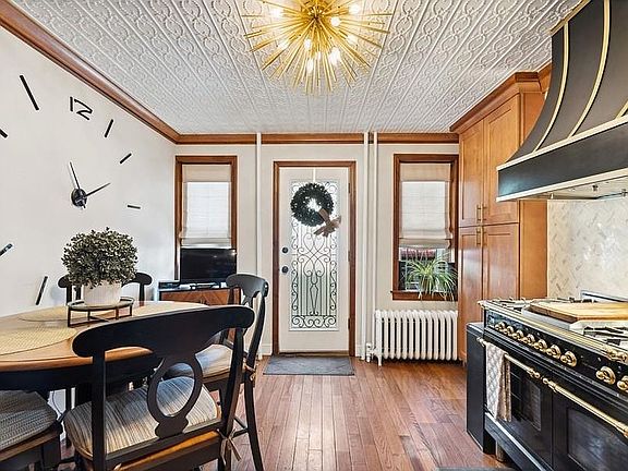 Welcome to this stunningly renovated 3 level brownstone home with garden level, a rare gem in the heart of the Jersey City. This exquisite property boasts 4 spacious bedrooms and 2 modern bathrooms, perfect for families or professionals who appreciate luxury living. The first floor bathroom is bluetooth equipped. As you step through the beautiful stained glass front door, you will be greeted by the grandeur of high ceilings and refinished floors that showcase the character of the original architecture. The first floor features a chef's kitchen with high-end matte GE Cafe Line refrigerator and dishwasher, including an elegant vintage-style Hallman Italian range with gold accents and custom hood by Hoodsly, quartz Calacatta Vagli counters, Maple Almond Shaker cabinetry, and a peek-a-boo window into the living room, perfect for entertaining guests. The backyard is a private oasis with herringbone pattern pavers and a custom wooden privacy fence, providing the perfect setting for outdoor dining and relaxation. The third floor features a brand new kitchen with herringbone wood grain counters and high-end stainless steel appliances, perfect for cooking gourmet meals. This home also features stunning original chandelier medallions and a brick-faced decorative fireplace, adding warmth and character to the living spaces and a custom walk-in closet on the third level. This property is truly a masterpiece that blends old-world charm with modern luxury. With its prime location, this property offers easy access to restaurants, shops, 2 blocks from Columbia Park, and just 5 blocks from the Danforth Light Rail, and 1.5 miles from the Port Liberte Ferry Terminal, making it an ideal choice for those seeking the perfect urban lifestyle. Don't miss the opportunity to make this exceptional property your own. Schedule your viewing today!