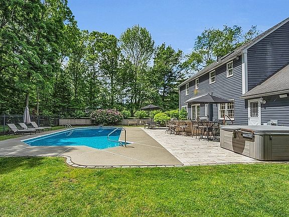Expanded Colonial offering luxurious lifestyle amenities on quiet cul-de-sac neighborhood in charming Oxford, MA. Expansive, flexible floor plan w/ 4 separate living areas on the 1st floor plus laundry room, ½ bath & beautifully designed kitchen featuring appliances by Bosch & Electrolux. Breakfast bar flows to living area and oversized formal DR. Enjoy your favorite music w/built-in speakers by Bose as well as central air/mini-splits, central vac, custom blinds, wainscoting & crown molding throughout. 4 bedrooms on 2nd floor include a primary suite w/tiled shower and walk-in closet. Backyard haven, replete with in-ground, saltwater, heated pool, outdoor granite kitchen island, Hot Tub/Spa, shed & Sport Court. Private level lot with mature perennials and trees including irrigation system offers many areas to play and relax! Finished lower level w/bar & ½ bath. Oversized garage w/walk-up loft offers expansion options & storage. ~2 miles to Market Basket, Home Depot, Urgent Care & I-395.