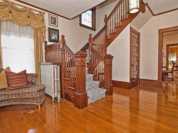 This beautifully updated Colonial home has it all, updated with modern amenities and loaded with original character. The front of the home has a grand foyer with a bridal staircase and a cozy 3 season front porch. The first floor features a large front to back Living Room with french doors, a coffered ceiling & gas log fireplace, a Formal Dining Room with built in cabinets, a powder room and a custom kitchen. The kitchen features a large center island, granite counters, travertine back splash, stainless appliances including a Wolf 5 burner gas cook top, a coffered ceiling & a 2nd staircase to the bedroom level. The second floor offers 4 spacious bedrooms and a den/home office. The full bath was totally updated offering marble floors & double vanity countertop. There are beautiful wood floors throughout with tile/marble in the kitchens & baths. A walk up attic. full basement & 2 car garage, offer ample storage. Updates include kitchen, baths, roof, windows, heating system, & insulation.