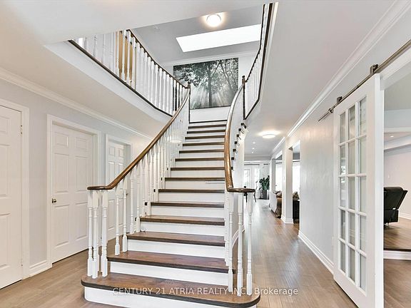 This charming 2-storey home has undergone a meticulous top-to-bottom renovation, blending modern amenities with classic charm. Nestled in the sought after Unionville neighbourhood, it boasts a beautifully landscaped corner yard with interlocking driveway. Upon entering, you're greeted by a grand Scarlett O'hara staircase leading into an open-concept living area. This spacious home features hardwood floors, large windows and skylights flooding with natural lights. The modern gourmet kitchen is outfitted with quartz countertops, custom cabinetry, and top-of-the -line SS appliances. A grand breakfast area, overlooks the lush greenery backyard, perfect for a morning coffee. Upstairs, the primary bedroom is a true retreat with a luxurious ensuite bathroom complete with a soaking tub, separate shower and dual vanities. The 2nd and 3rd bedroom both have its own 3pc modern ensuite bathroom. Notable features include; a large mudroom with access to both the garage and side entrance. The finished basement offers additional media/entertainment space with a 3pc bathroom and additional bedroom/storage. This home shows pride of ownership and well thought-out functional design, offering a turnkey opportunity for its new owners to enjoy.