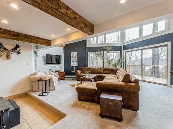 Magnificent "Open Concept" style 3 Bedroom 3 Full Bathroom Custom Contemporary Home w/ lake views in Forest Lakes section of Byram Township! Attention to every details throughout this renovated custom "Lake" style home! Vaulted & Wood Beamed ceilings, Floor to ceiling window in the open Livingroom w/ wood burning stove. Open Dining Room. Gourmet Kitchen w ample custom cabinets & counter space. Kitchen Island is 5' x 12'! Additional Breakfast bar. Expansive deck w/ lake views. Perfect for entertaining! 1st floor Primary Bedroom with walk in closets & "spa" style en suite. Additional Full Bathroom & Laundry room. Second level boasts 2 Large Bedrooms w/ custom walk in closets & loft over looking the Living Room. The Third level offers a private setting for a Home Office/Craft Room. Finished Basement Family Room with walk out & additional crawl space for storage. Covered porch off Kitchen/Mud Room Area leads to energy & cost efficient "Central Boiler" Wood Boiler as a 2nd home heating source & the 3 bay heated Garage. The Garage is 2016 sqft w/ 3 levels, separate Oil Boiler & 2 Driveways. Open and wooded yard. Lake community living at its best! Easy access to shopping & major highways. Welcome to your new "Home Sweet Home"