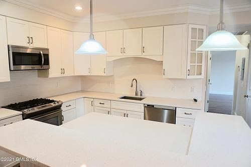Large Two bedroom, two bath unit over looking the river. Unit features an open floor plan, Washer and dryer in unit. Living room with sliders lead out to large deck great for entertaining and enjoying the out doors. Close to everything in Glenville. Unit also has a garage space.