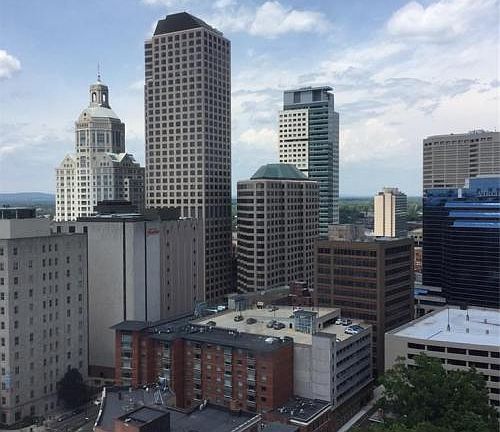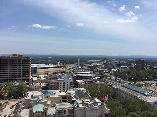 IM Pei designed Bushnell Tower 24th floor unit w balcony. Views of Ct. River to the east, updated kitchen, laundry in unit, 2 bedrooms and office. 24 hr security, parking for 2 cars in underground garage.