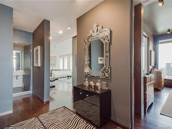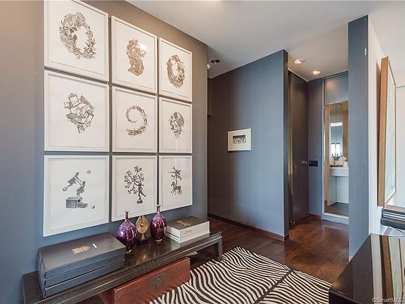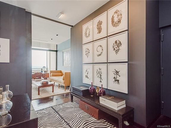 IM Pei designed Bushnell Tower w Tai Soo Ki designed interior on the 27th floor. Spectacular views of the Ct. River from this penthouse unit . Updated kitchen, library, second bedroom, guest bath, master suite w full bath, balcony, expansive living room space, high ceilings. 2 parking spaces. Condo fee $1334 includes heat, hot water, central air, basic cable.