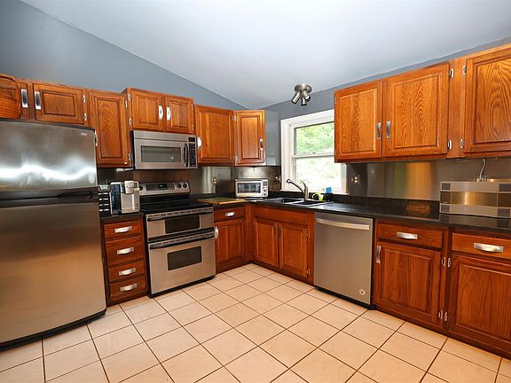 Looking for privacy? Come and see this "hidden" gem! Situated on a private, wooded, 2.5 +/- acre lot on a quiet cul-de-sac, this split level, 3-bedroom, 3-bathroom home with 2-car garage offers recently updated front entrance steps, a generator, central vac and a brand new roof! Imagine enjoying many tranquil moments on your attached 3-season screened porch with cathedral ceiling, while sipping on your favorite beverage! Inside, this home boasts cathedral ceilings in the open concept living and dining areas, along with beautiful new flooring and a stunning floor-to-ceiling fireplace! The kitchen features tile floor, granite countertops, stainless appliances, a stainless backsplash, plenty of cabinet space, and under cabinet lighting! On the upper level is a full bathroom, 3 spacious bedrooms equipped with ample closet space, and an ensuite master ¾ bathroom. As you descend to the lower level, you will find a ½ bath, a pellet stove, an abundance of storage space, and even a ramp leading to a fenced in area in the backyard for your furry friends to come and go as they please! Need a 4th bedroom? Or an office? There is plenty of room on the lower level to create one! Also on the property is a separate 1-car garage which could be used as a workshop or turned into that man cave you've always dreamed of! This is the space you and your family are seeking in a secluded and private home.