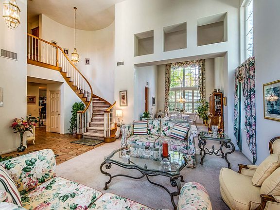 Welcome Home! This large Dove Canyon corner lot home sits in between the 1st and 2nd holes of the golf course and has a potential for up to 6 bedrooms. Features include formal living room with vaulted ceilings, a downstairs bedroom/office with it's own full bath, large master bedroom with a view of the golf course, upstairs bonus room, 3 car garage, and much more. One bedroom currently used as the master bedroom's closet, but can easily be switched back. With plenty of room in the backyard for entertaining or relaxing, this home is a must see!
