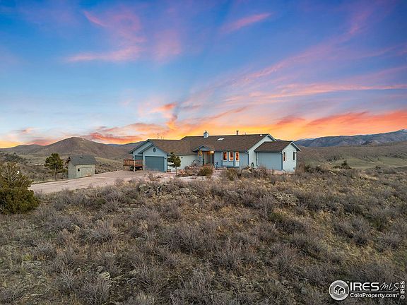 NEW PRICE AND SELLER OFFERING LARGE BUYER CONCESSION! Call listing agent for details. Escape the busy city life without sacrificing the comforts of modern living with year round surprise visits from wildlife and breath-taking views of the Mummy Range from the comfort of your living room. Beautiful ranch home with walk out basement on private hilltop with 35 acres and NO HOA is just 10 miles from the Forks at 287 and 74E. This 3-bedroom home provides the blend of peaceful, rural living with modern conveniences and comforts. The home boasts a large primary suite, vaulted ceilings, quartz counters throughout the home, stainless steel appliances, high end red oak cabinets with pull out drawers, newer carpet, newer paint, multi zoned speaker wiring throughout the house, whole house water filtration system, wired for generator/transfer switch, 8 camera security system with driveway alert system, large 3 car garage, large workshop, and a 4" concrete walled fire-resistant vault room. Property features outdoor water feature, Playhouse/shooting shed with private range, and loafing shed. Sellers have a VA assumable loan, ask broker for more details. Home has been deemed defendable from fire danger and is insurable.