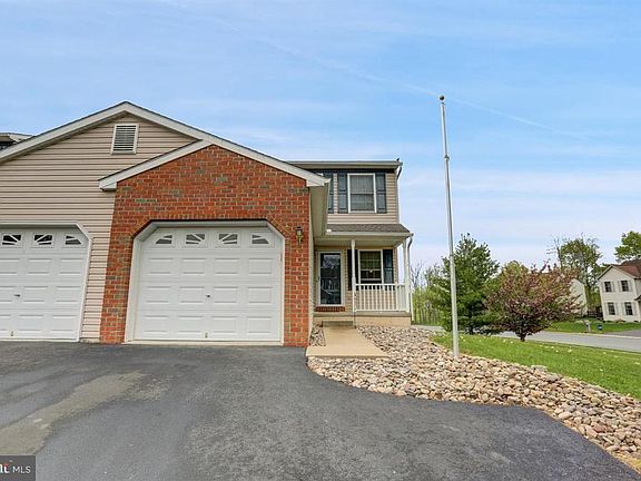 Great end unit townhouse located on a corner lot in a rural setting, yet close to everything. This home boasts updated vinyl wood flooring on the main level and newer carpet upstairs. The living room is large and flows into your dining room with sliders leading out to an inviting covered deck, a cement patio and a large back yard, the perfect setting for large family and friend gatherings. Back inside and off the dining room is your kitchen with all appliances remaining and a half bath. Upstairs are 3 generous sized bedrooms and a remodeled full bath with tiled floors, new tub surround, shower doors and hardware. The lower level is already finished for you and offers a large family room and laundry room. Don't forget about the one car garage, shed and gas heat and central air!