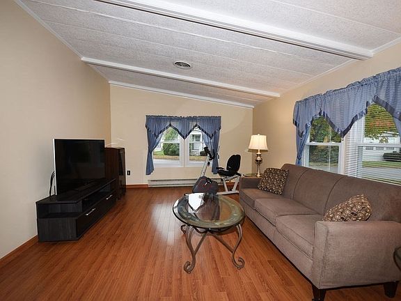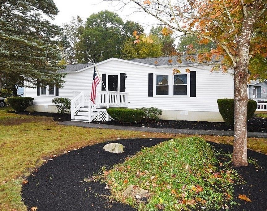 Move right in to this well-maintained 2 bedroom, 2 bath home in Leisurewoods, Rockland! Open floor plan with cathedral ceilings. Skylight provides natural light in modern kitchen appointed with stainless steel appliances. Primary bedroom boasts large walk-in closet and private en-suite bath. Second bedroom with spacious closet offers additional storage. Washer and dryer included. Central air conditioning with both gas and electric heat zones. Maintenance-free exterior vinyl siding, 3-season enclosed porch, storage shed, two off-street parking spaces. LEISUREWOODS is an active 55+ community. Monthly land lease fee includes real estate taxes, curbside trash pick-up, landscaping/snow removal of common areas, use of clubhouse, game room, billiards, library, heated outdoor swimming pool, bocce courts, fire pit, and courtesy van service. Convenient to shoppes, restaurants, highway, Rockland’s senior center, and local hospitals, this home is a must-see! Welcome Home!