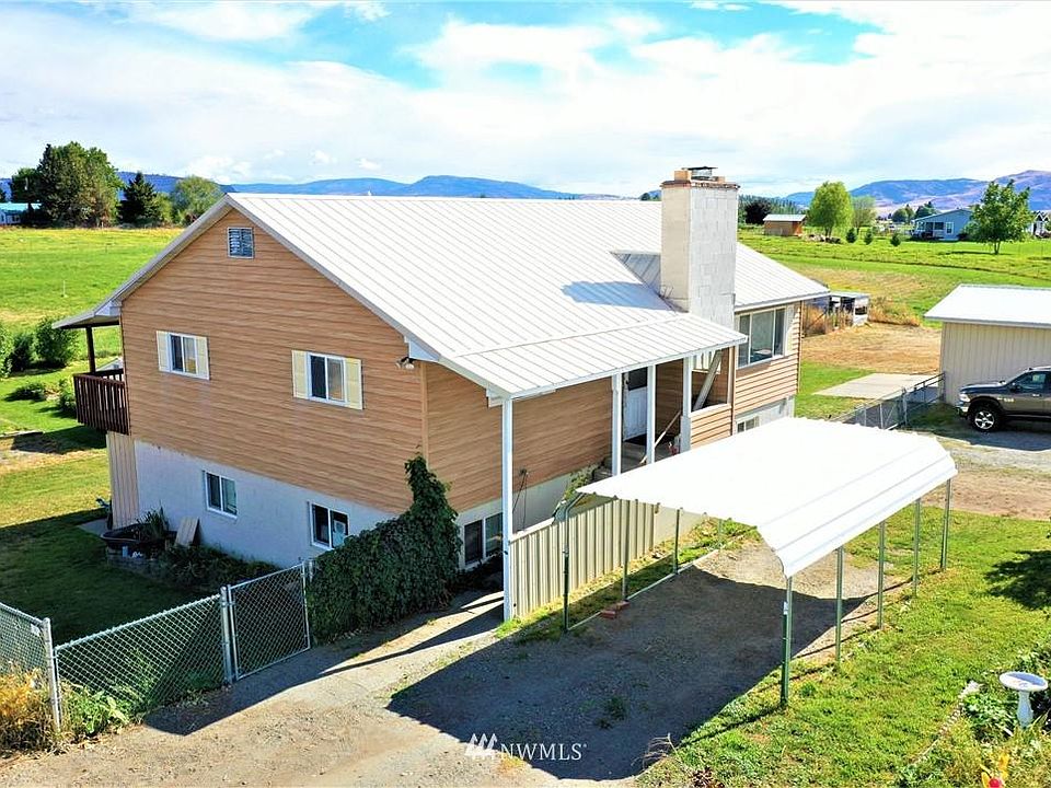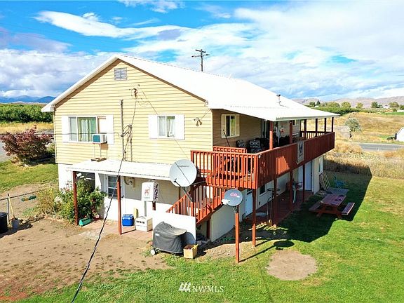 So many possibilities with this 4 bed/2 bath 2268 sq. ft. home on 2.5 irrigated acres. Main level of the home has large living room with fireplace & insert, kitchen with tons of cabinets (all higher end appliances are nearly brand new including the induction/convection stove), dining room with pellet stove & sliding doors leading to large 252 sq. ft. deck, full bath, & 2 bedrooms. The daylight basement has its own access, kitchen, living room w/ wood fireplace, full bath, bonus room/laundry w/ pellet stove, and 2 bedrooms. 2 large shop/garages with power & work benches, barn with power & tack room, chicken coop, garden shed, garden area & RV parking with 30 & 50 amp power. Yard and pasture (with sprinklers) is fenced. Private well.