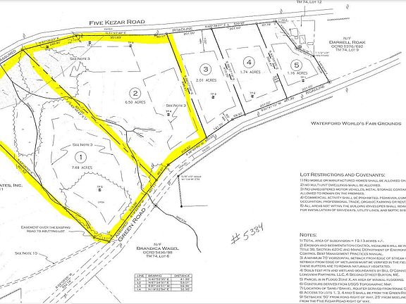 TWO ADJACENT LOTS OF RECORD totaling 14.19 acres. The top lot on Green Hill Road includes mountain views to the foothills of the White Mountains, a completed septic design, and drilled well head on site. Telephone pole on site, power at the street. The initial work has been done for you. Trail access, four-wheeler and snowmobile, both, and dozens of lakes and ponds nearby. The lot that abuts Five Kezars Road shows a pasture, apple trees, stone walls and a brook that runs through the property. Keep the 2nd lot for space or sell -- it's up to you! NOTE: Lot 1 Green Hill Road taxes are $413.96 and 00 Five Kezars the taxes are $385.58.