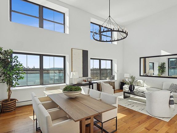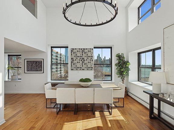 Magnificent PAULUS HOOK direct waterfront residence with the most spectacular unobstructed views imaginable! Over 2,000 square feet of unbelievable luxury, this one-of-a-kind 3 bedroom, 3 full bath duplex condominium is positioned directly on the Southeast corner floating above the Hudson River. This incredible setting showcases dramatic, panoramic, and protected views over NYC and the Hudson River with all of the world's most notable landmarks on display from every room in the home! The soaring double height ceiling in the open concept living/dining room is filled with light through banks of windows and custom chandelier. This grand gathering space is meant for memories and merriment for any sized family. The chef's kitchen features professional grade s/s appliances, imported stone countertops, mosaic backsplash, and contemporary espresso hardwood cabinetry with extensive storage. A custom sliding breakfast table was created on floating hinges to create an alternative prep space, homework/zoom station, or bar area. Your first of two king-sized primary en suites is located on this main level with awesome Statue of Liberty views, and full marble bath. The second floor primary suite is beyond opulent with huge California style walk-in closet, more incredible views, and a true spa-like bath with full wet room including jacuzzi tub and 2-person shower. The split style 3rd bedroom allows individual privacy for children, or separate office area, and features another custom built-in closet. One valet garage parking space available! Hot water (heat), included in HOA fee. 1 Greene at Clermont Cove is a full service building featuring 24hr. concierge/security, gleaming waterfront outdoor pool and hot tub grill stations, gym, community sky room and lounge, on-site storage, and more! Beautifully and recently renovated common areas. Enjoy this fantastic neighborhood with phenomenal dining, shopping, waterfront boardwalk/promenade, the new Whole Foods, PS/16 Bradford school district, and minutes to NYC via the PATH/NY Waterway, right outside your front door!