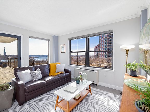 Move right in to this luxuriously renovated and turn-key home at Clermont Cove, a premiere condo building in one of Jersey City’s most desirable neighborhoods, Paulus Hook. The sun-soaked unit is perched over the Morris Canal and offers sweeping views above Paulus Hook, Liberty State Park, Journal Square and beyond. This completely upgraded 2 bed plus office, 2 bath unit features 1404 sq. ft. of living space with Daltile porcelain, hardwood flooring, custom built-ins, and gallery lighting throughout. The chef’s kitchen has premium upgrades with Bertazzoni & Sub-Zero stainless appliances (including a dual convection/microwave oven), custom kitchen cabinets sourced from Italy, Moen fixtures, quartz countertops, Marazzi Carrera Marble backsplash, Elkay undermount sink, and more! Your private SW facing balcony, perched above the Morris Canal & Liberty State Park, is accessible from all rooms via new triple-paned Euro sourced doors. The bathrooms have been similarly upgraded with Marazzi Carrera marble floors, custom glass enclosures, and dual flow rainfall shower in the primary. This home has two extra large bedrooms which include an oversized primary suite with home office and an expansive walk-in closet fully stocked with organizational systems. An in-unit washer-dryer creates a picture perfect home! Amenities in the building include 24 hour concierge, fitness center, top floor amenity room & private pool. HOA includes all amenities plus valet parking, water, hot water, & heat. This ultra-convenient location gives you luxury of being minutes from a multitude of transportation options: 2 PATH stations (Exchange and Grove), multiple Citibike locations, Light Rail and ferries (Paulus Hook & Liberty Landing). Additionally, the neighborhood features excellent public and private education options within a few blocks (the River School, PS 16, Waterfront Montessori and St. Peters Prep).