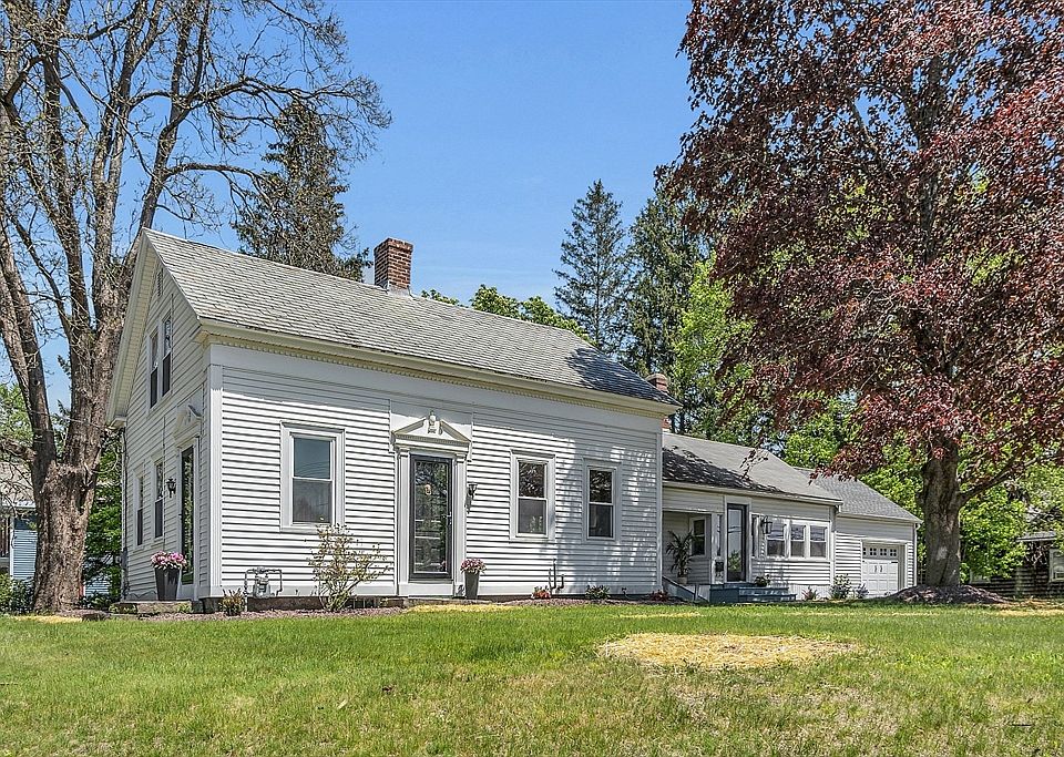 Welcome to 1 Greenfield Road, Montague where timeless glamour meets convenience in this 1750 farmhouse with exquisite historic charm.This newly renovated home boasts a wealth of upgrades and features designed to to enhance your lifestyle.The kitchen, shines with stainless steel appliances including a new refrigerator and dishwasher, stylish cabinets, granite countertops, a spacious center island w/ a butcher block top. Step inside to discover the comfort of 4 new mini splits providing both heat and cooling, recent insulation upgrades ensuring year round efficiency. A brand 2nd floor bathroom offers added convenience, a new gas hot water ensures reliability. Original wide pine floors grace the majority the of the home adding character, the basement and garage feature new concrete floors. The cozy porch has been transformed into a delightful four-season sunroom flooded with sunlight perfect for relaxing and entertaining.Situated on nearly a half acre corner lot for gardens and enjoyment